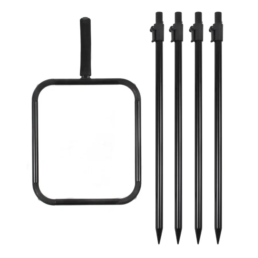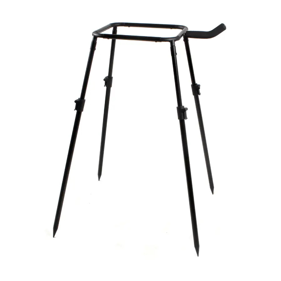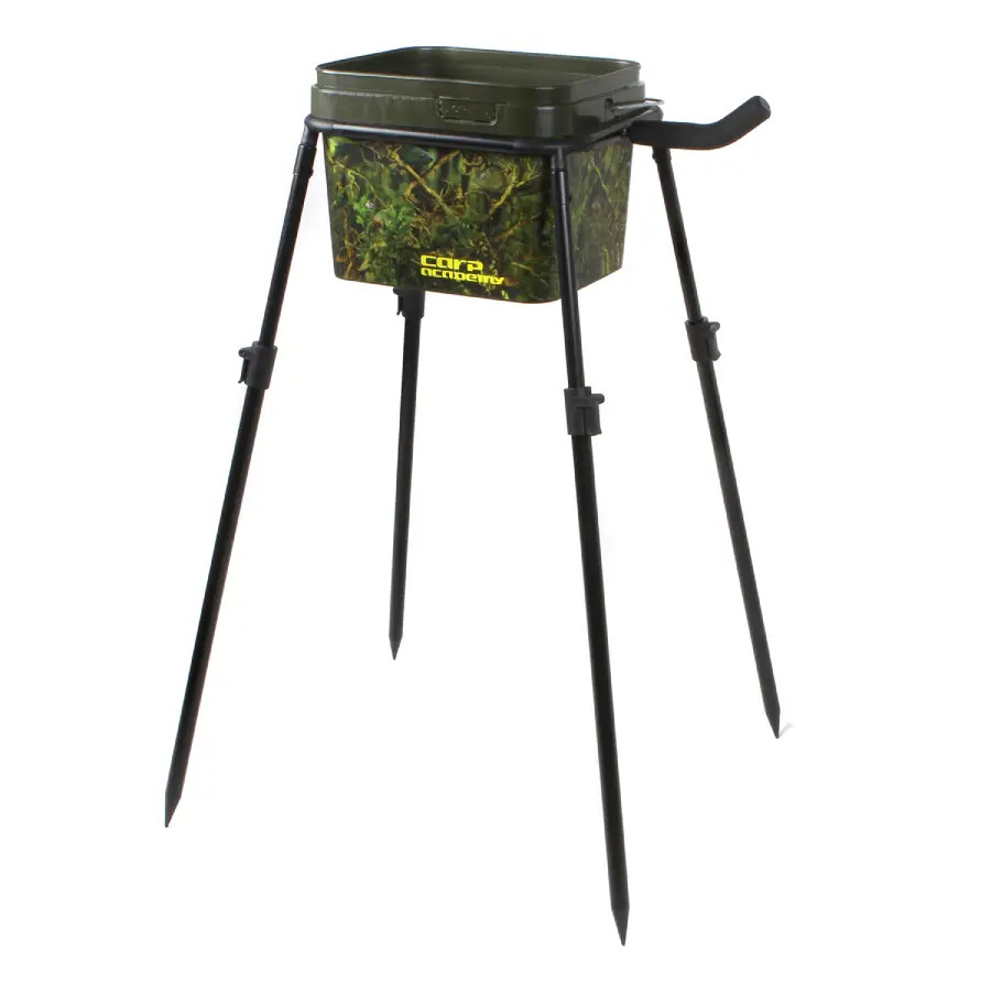 A Carp Academy Vödör tartó állvány praktikus és kompakt megoldás, amely jelentősen megkönnyíti a horgászat közbeni etetést és szerelékkezelést. Segítségével a 10 literes, szögletes horgászvödör kézmagasságban tartható, így az etetőrakéta töltése gyorsabbá, kényelmesebbé és pontosabbá válik.