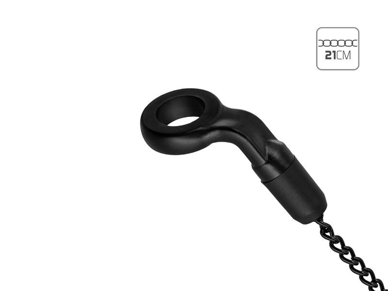 A jelzők rögzítését egy elegáns fekete lánc biztosítja, amely univerzális hurkos végződéssel rendelkezik, így kompatibilis minden szabványos menettel rendelkező kapásjelző tartóval vagy leszúróval.