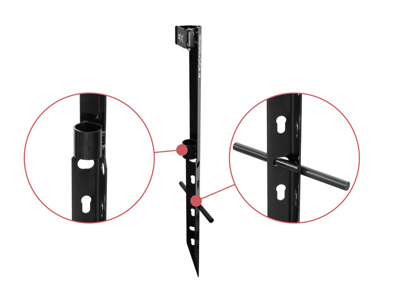 A felső részen található erős zárszerkezet megbízhatóan a helyén tartja a botot, és megakadályozza annak kirepülését az igazán brutális kapások során is. A hegesztett bottartó rész és a tartó alján elhelyezett vízelvezető kivágások tovább növelik a biztonságot és a használati komfortot.