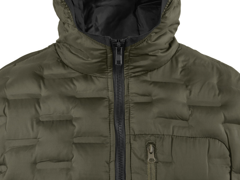 A kabát 3D hatású steppelt mintája és sötétzöld árnyalata férfias, dinamikus megjelenést ad, amely tökéletesen illik a szabadban töltött aktív napokhoz, ugyanakkor városi környezetben is elegáns választás.