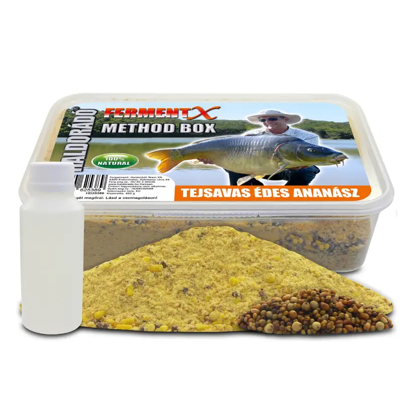 A Haldorádó FermentX Method Box a népszerű fermentált etetőanyagok kifejezetten method feeder technikára optimalizált változata. A felmelegedett vizekben már bizonyított FermentX keverékek most olyan formában érhetők el, amelyekkel nincs szükség külön előkészítésre, szitálásra vagy szemcseméret-igazításra – minden adott a gyors és eredményes horgászathoz.