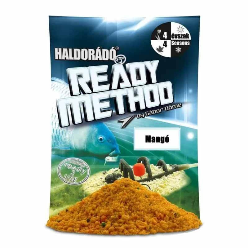 A Haldorádó Ready Method Mangó egy előre bekevert, azonnal használható method etetőanyag, amelyet kibontás után csak át kell törni egy törőszitán, és már használható is. Speciális eljárással, magas ásványi anyag tartalmú összetevőkkel, betainnal és aminosav koncentrátumokkal készül, majd érlelik is, így a hagyományos, vízzel kevert etetőanyagoknál jóval intenzívebb csalogatóhatást nyújt. Kellemesen édes, gyümölcsös mangó aromája miatt egész évben eredményesen használható, különösen a melegedő vízben válik igazán fogóssá. Narancssárga színe a zavaros vízben is jól látható, így hatékonyan felkelti a halak figyelmét. Elsősorban ponty és amur method horgászatához ajánlott.