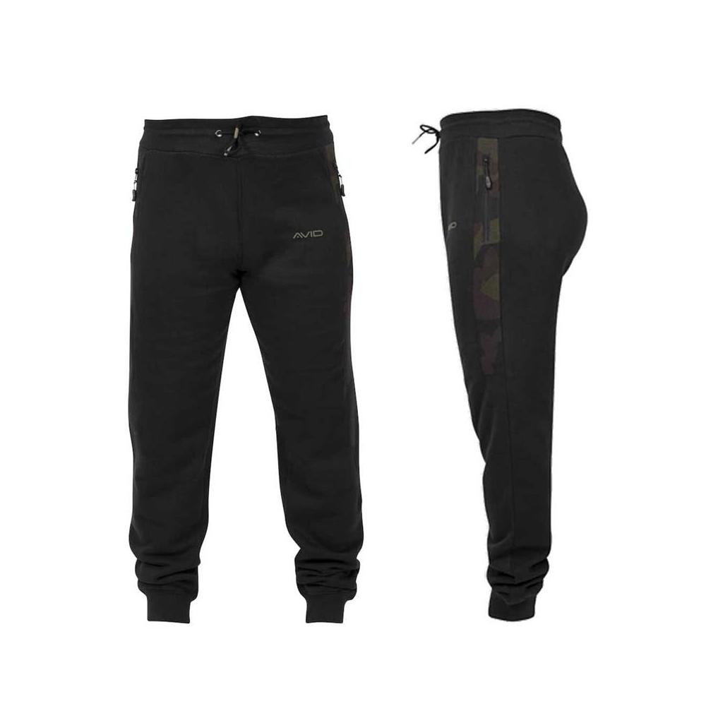 Az Avid Carp Distortion Black Jogger melegítő egyedi Avid camo dizájnnal, melyben a camo oldalsó panelek és a hátsó zseb is megtalálható.