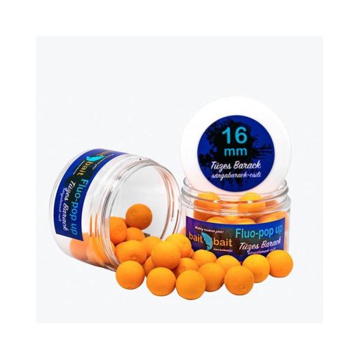 A Bait Bait Fluo Pop-Up bojlijaink nagyon élénk színekkel, erőteljes aromával, valamint hosszantartó lebegő képességgel rendelkeznek. Anyagukban extra mennyiségű étvágyfokozókat és aminókat tartalmaznak. A csalik csomagolás előtt is átesnek egy étvágyfokozó fürdőn, hogy minél aktívabban és minél frissebben várják, hogy bevessék Őket. Anyag összetételük egyedülálló a magyar piacon, nagyon egyedi alapanyagok alkotják.