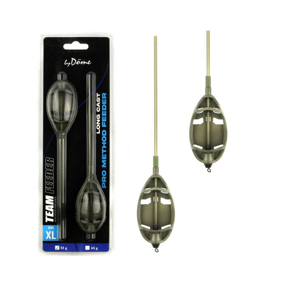 A By Döme Team Feeder Method Long Cast távdobó kosarak új, továbbfejlesztett verziója. Az előd is méltán volt a legnépszerűbb method kosár a kiváló dobási tulajdonságai miatt, azonban az új modell még azt is túl túlszárnyalja. Számítógépes tervezéssel javítottuk a súlypontját, ami még nagyobb dobástávolság elérését teszi lehetővé. A középső borda eltávolításával nagyobb csalik és nagyobb horgok problémamentes használata is elérhető. A gubancolódást megelőző vezető szár hossza gondos tesztelések után lett beállitva ahhoz, hogy a 100 méter feletti dobásokat is megfelelően stabilizálja. A kosár anyaga cink-aluminium ötvözet, ami elnyűhetetlenné teszi a kosarat és nem mellesleg sokkal környezetbarátabb mint a hagyományos ólomból készült társai.