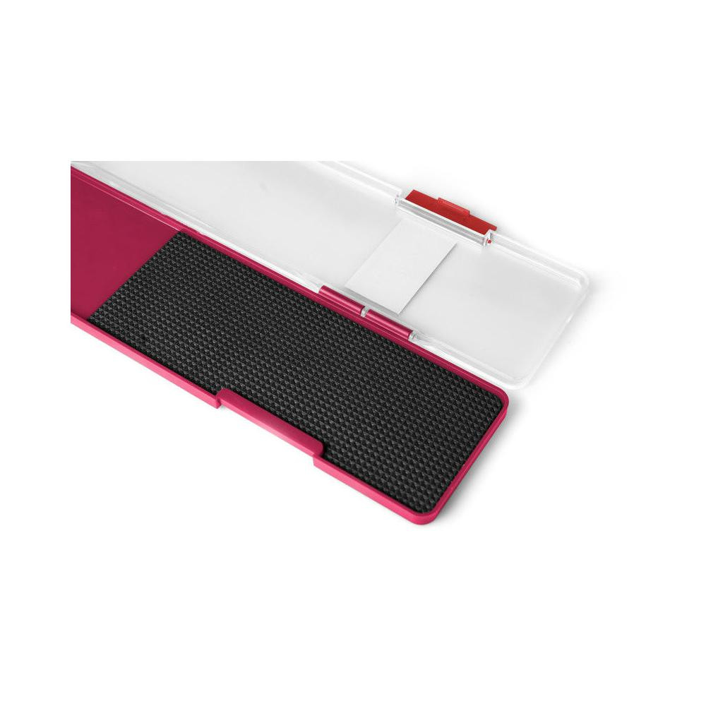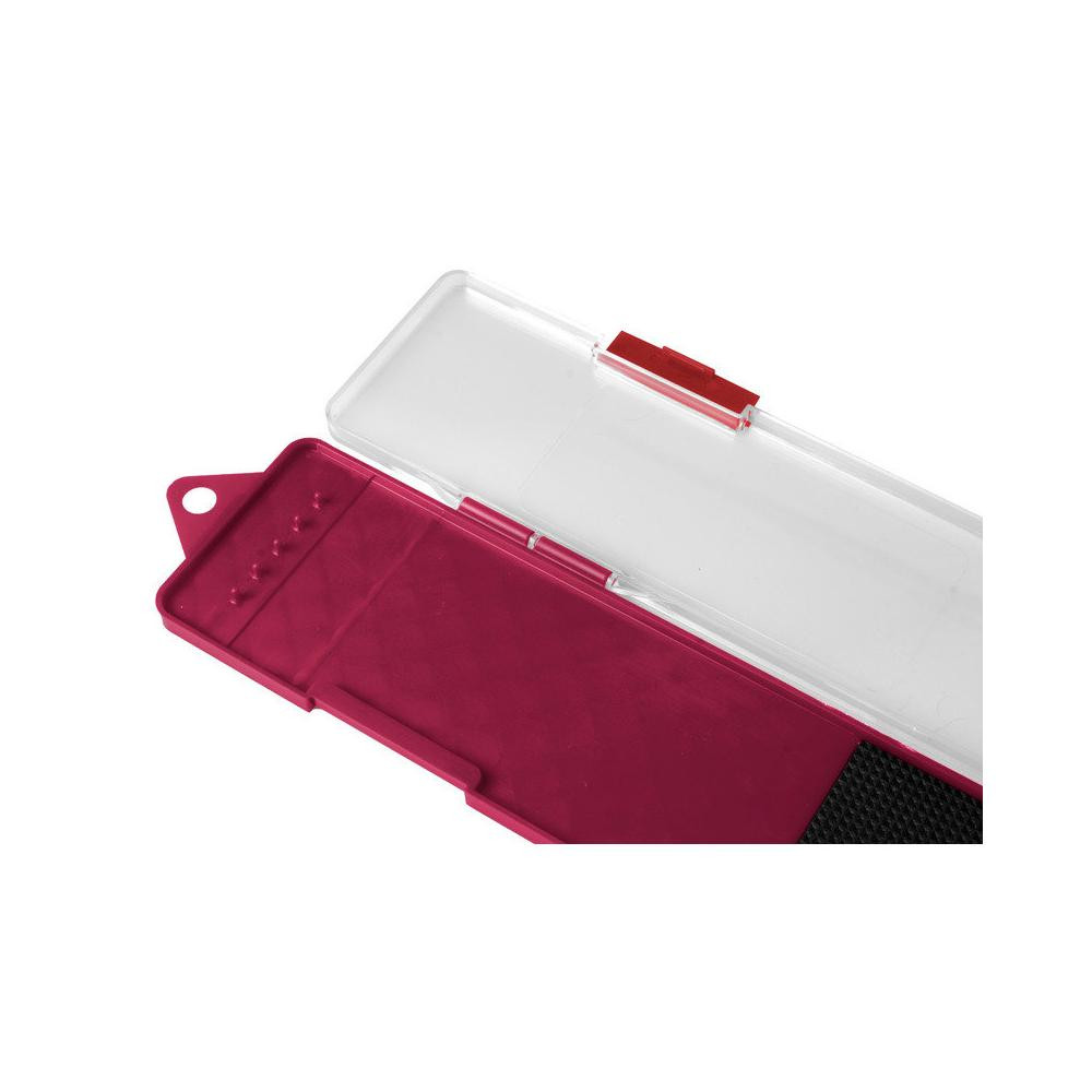 A Delphin ATOMA feeder előketartó box egy praktikus segédeszköz a kész feeder előkék tárolására, mely nem hiányozhat egyetlen horgász felszerelésében sem. A doboz alsó része bordó színű, melyen műanyag kiálló tüskék vannak, ezekre rá tudja fogatni a az előkéit és az EVA habba bele tudja szúrni a horgot. A felső rész átlátszó, így tökéletes az áttekinthetősége az előkéiről. Két klippel záródik.