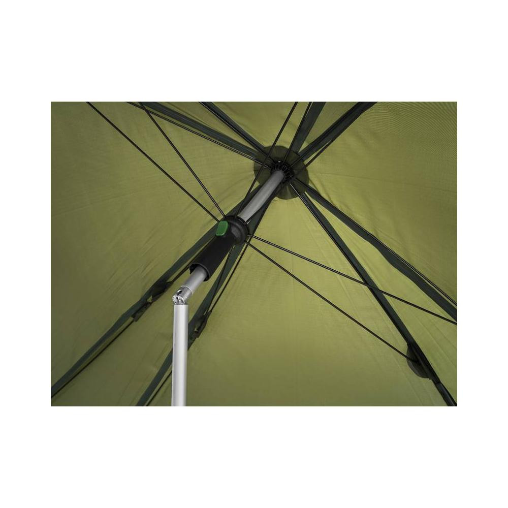 Az esernyő magassága és dőlésszöge igény szerint állítható, ami a rögzítést is megkönnyíti még durvább terepen is.