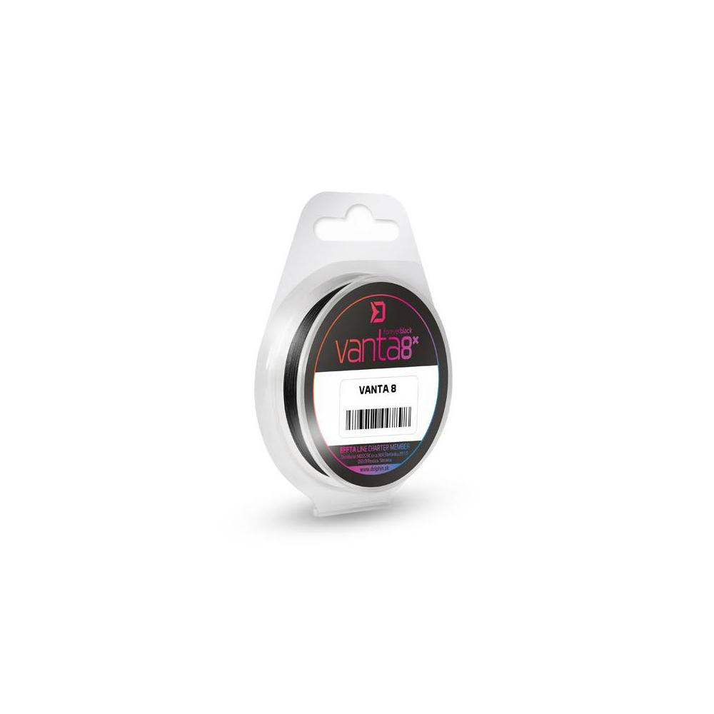A Delphin Vanta 8 egy kivételes zsinór nyolc nagyon szorosan font PE- mikroszálból. A pontos kör alakú keresztmetszet, sűrű fonás és a speciális felületkezelés nagyszerű csúszást eredményez a gyűrűkben. A VANTA 8 fotonzsinór egyik legnagyobb előnye a színállóság. Fekete granulátumból készül, így soha nem veszíti el a színét! A fekete szín bizonyos esetekben nagyon hatékony, mivel jól kitűnik a környező vízben, és a horgásznak pontos áttekintése van a zsinór és a csali helyéről. Kiváló kopásállósággal rendelkezik, amelyet a pergető és feeder horgászok bizonnyal értékelni fognak. A Delphin VANTA 8 zsinór fő előnyei a tartós színállóság, a kopásállóság és az ellenálló képesség.