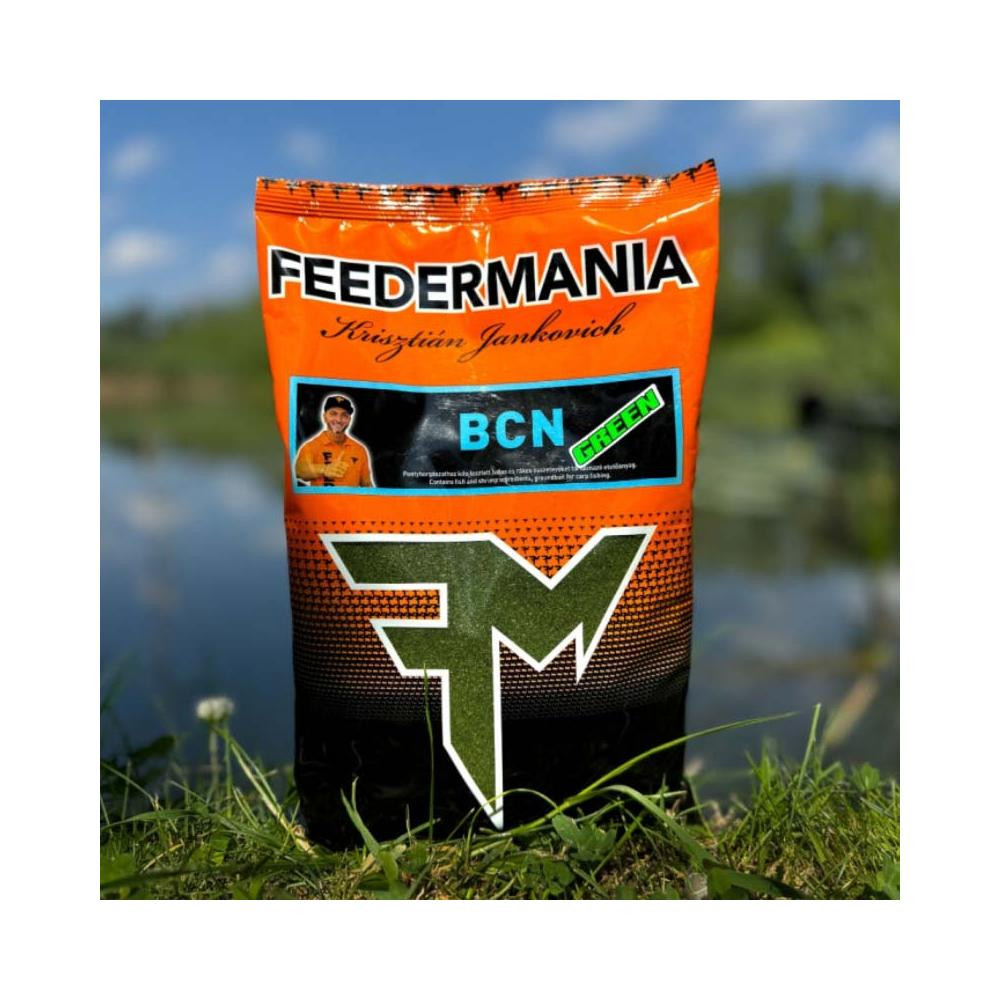 A Feedermania BCN Green pontyhorgászathoz kifejlesztett zöld színű, halas és rákos összetevőket tartalmazó etetőanyag.