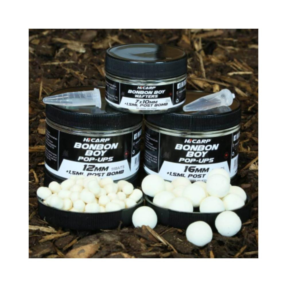 A Bon Bon Boy Pop Up enyhén tört fehér színével és különleges íz és illatvilágával rendkívüli hatást gyakorol a pontyokra. A fenomenális lebegő bojli lelkét egy speciális édes-krémes ízből és illatból álló aromakoktél adja, emellett van egy scopex-es háttere ami igazán érdekessé teszi. Ezen kívül tartalmaz esszenciális olajokat, n-butiryc acidot (vajsav), valamint betaint, így egy teljesen egyedi jelleget kapott. A Bon Bon Boy pop up kiválóan alkalmas az úgynevezett Single Hookbaits, azaz egyetlen egy szem csali etetés nélküli használatához is, de süllyedő bojlival hóember kombinációban is kiválóan alkalmazható. Nagy felhajtó erővel rendelkező speciális pop-up mixből készül és kimagaslóan egyedülálló tartóssággal rendelkezik.