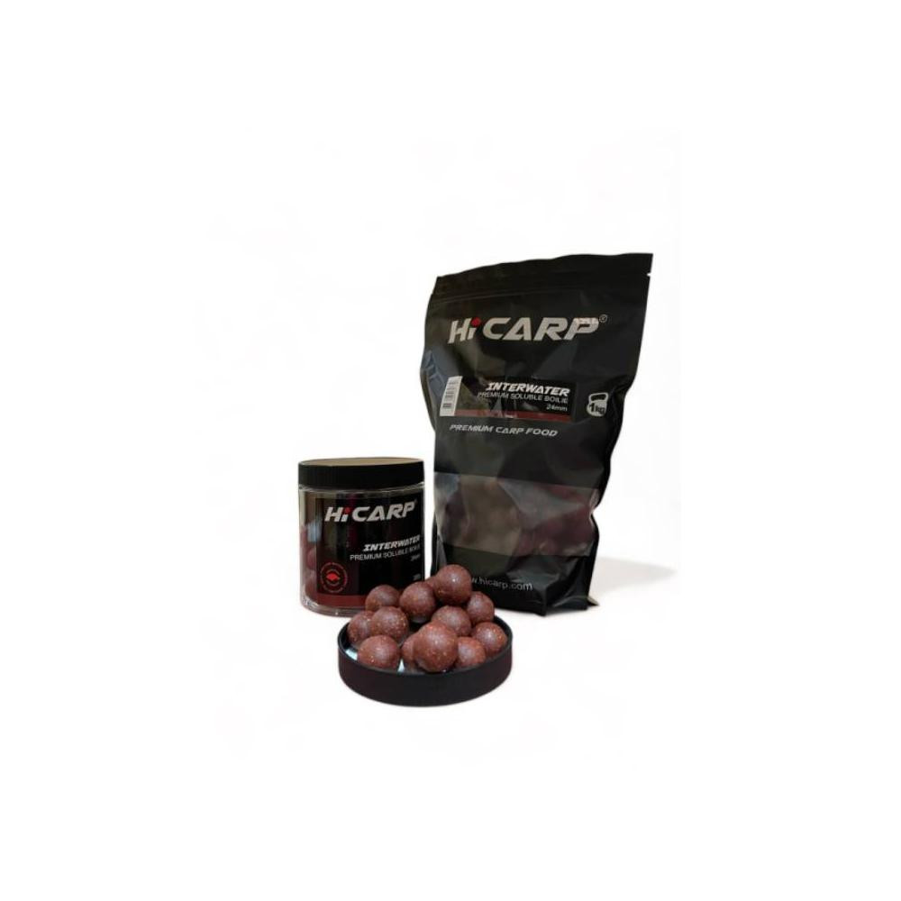 Az INTERWATER kész bojli több mint két évig tartó project eredményeként született meg. A mélyvörös színű, természetesen vonzó csali egyesíti magában a 100%-ban vízoldékony halproteineket, valamint a tápanyagokban gazdag tej és növényi fehérjéket egy rendkívül erős étvágystimuláló hatású aminosav koncentrátummal. Már a neve is tükrözi univerzális és széleskörű felhasználhatóságát. Az Interwater-el egyébként a HiCARP visszatért a régi gyökerekhez, mert egy régi, ámbár nagy eredményességgel rendelkező kedvenc bojlinkat öltöztettük új ruhába. Ezt a bojlit a csapat legalább 15 éve eredményesen használja privát és versenyhorgászatok alkalmával egyaránt. Az Interwater gondosan válogatott, kiváló minőségű összetevői a „könnyű” belső szerkezeténél fogva a vízbe érkezést követően szinte azonnal „dolgozni” kezdenek és a kapitális, öreg pontyokat is a táplálék felvételére ösztönzik. Hosszan tartó, erőteljes és jellegzetes ízzel, valamint fenomenális halas-fűszeres illattal rendelkezik.Összetevői között megtalálhatóak az alacsony hőkezelésű és enzimkezelt hallisztek, máj - por és folyékony alakban, betain, madéreleség lisztek és étvágystimulálók. Rendkívüli vízoldékony képességénél fogva és könnyű emészthetősége révén még a leghidegebb vizekben is maximális csalogató hatással és attraktivitással rendelkezik. Természetesen minden idők egyik legsikeresebb attraktora, a félelmetes hatásfokú Robin Red sem hiányozhat az összetevői közül! Az Interwater tojás hozzáadásával készül egy speciális fűszerkeverék használatával, egyedi hőkezelési eljárással. Csalogató hatása nagymértékben növelhető az Interwater Booster folyékony adalékkal. A rövid és a hosszú távú horgászatokra egyaránt alkalmas.