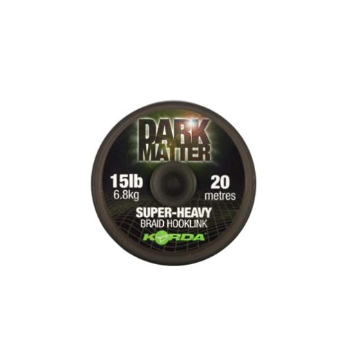 Korda Dark Matter Super Heavy Braid Hooklink előkezsinór a Korda 2014-es újdonsága. A lágy fonott zsinór extra nehéz, ezáltal extra gyorsan süllyed, diszkrét álcázó színe még a leggyanakvóbb halak elől is elrejti. Többféle bojlis szerelék elkészítéséhez használható.