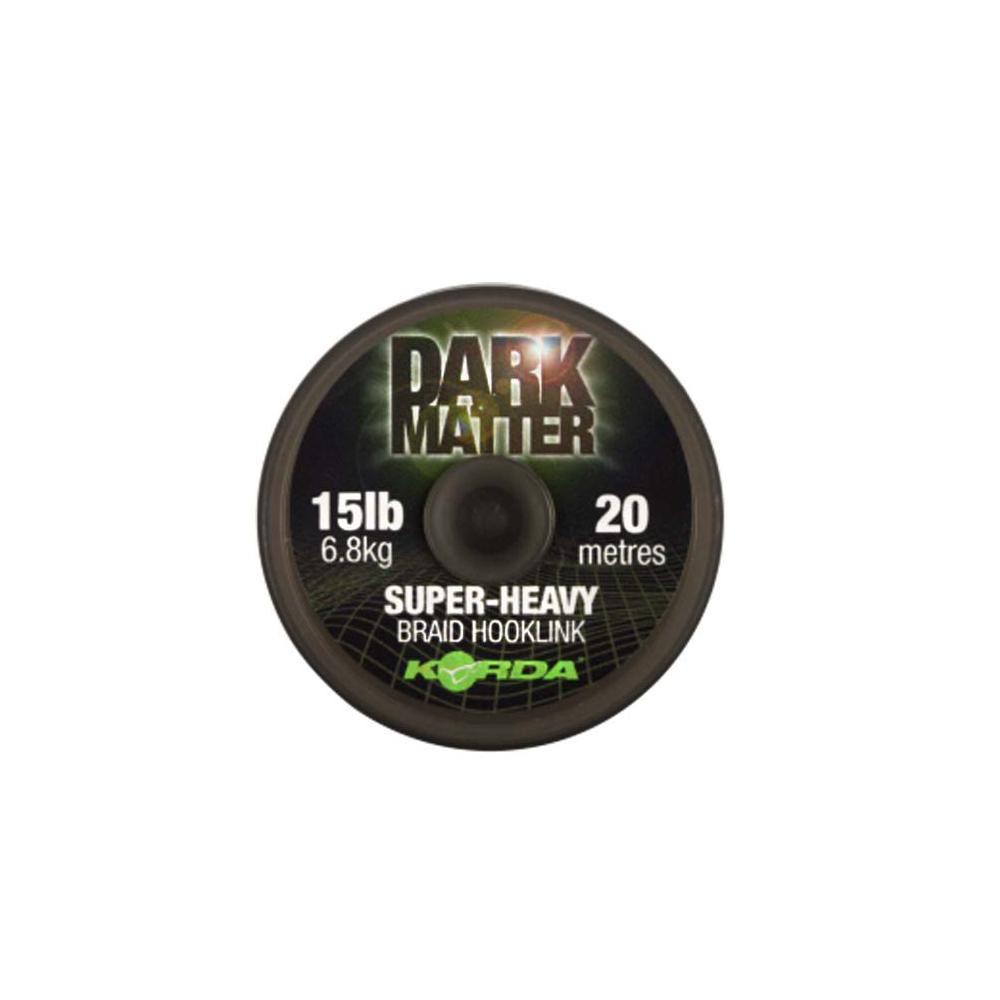 A Korda Dark Matter Super Heavy Braid Hooklink előkezsinór a Korda 2014-es újdonsága. A lágy fonott zsinór extra nehéz, ezáltal extra gyorsan süllyed, diszkrét álcázó színe még a leggyanakvóbb halak elől is elrejti. Többféle bojlis szerelék elkészítéséhez használható.