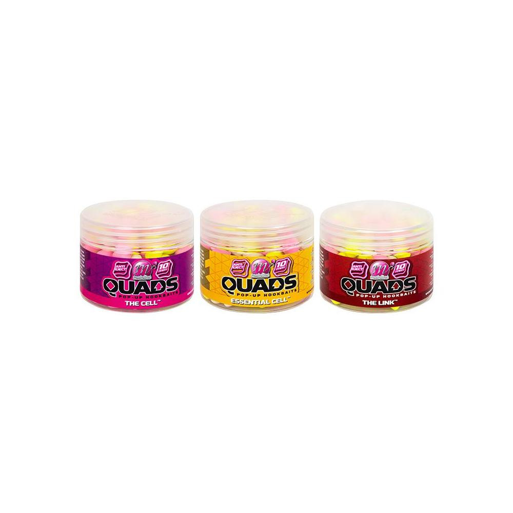 A Mainline "QUADS“ egy új fogalom a horogcsalik széles választékában. Négyzet alakja azt jelenti, hogy szokatlan és nehezebben tudják a halak kifújni ezt a horogcsalit. Méretüknek köszönhetően tökéletesek egy egyedülálló horogcsaliként, a használja magokkal együtt, a pop-up verzióval ideális kibalanszírozni egy süllyedő csalit, vagy vonzó akár Zig vagy felszíni csaliként is! Pop-up-ként vagy egyszerű süllyedő horogcsaliként kapható bármilyen prezentációhoz! Kapható 10mm-es nagyságban 150ml-es kiszerelésben.
